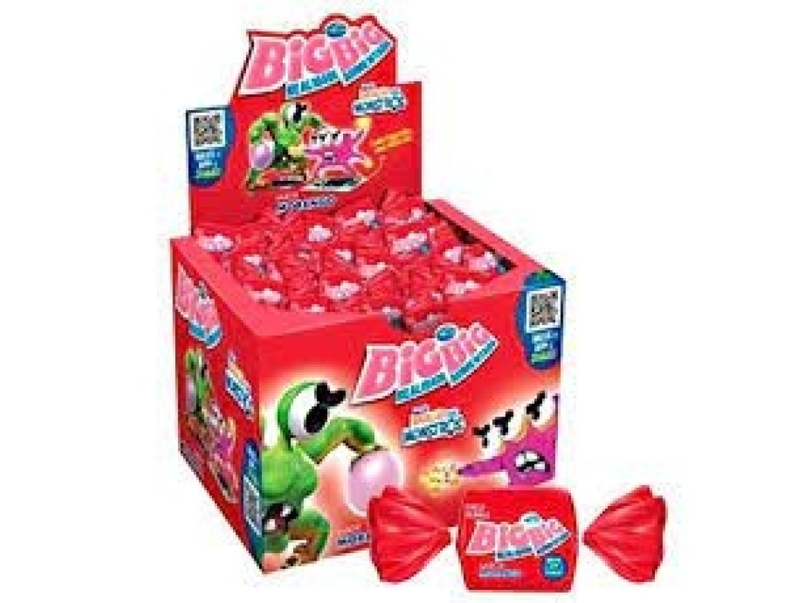 O chicle Big Big tem sabor de morango e vem com figurinhas colecionáveis. Embalagem de 315g com aproximadamente 100 unidades.